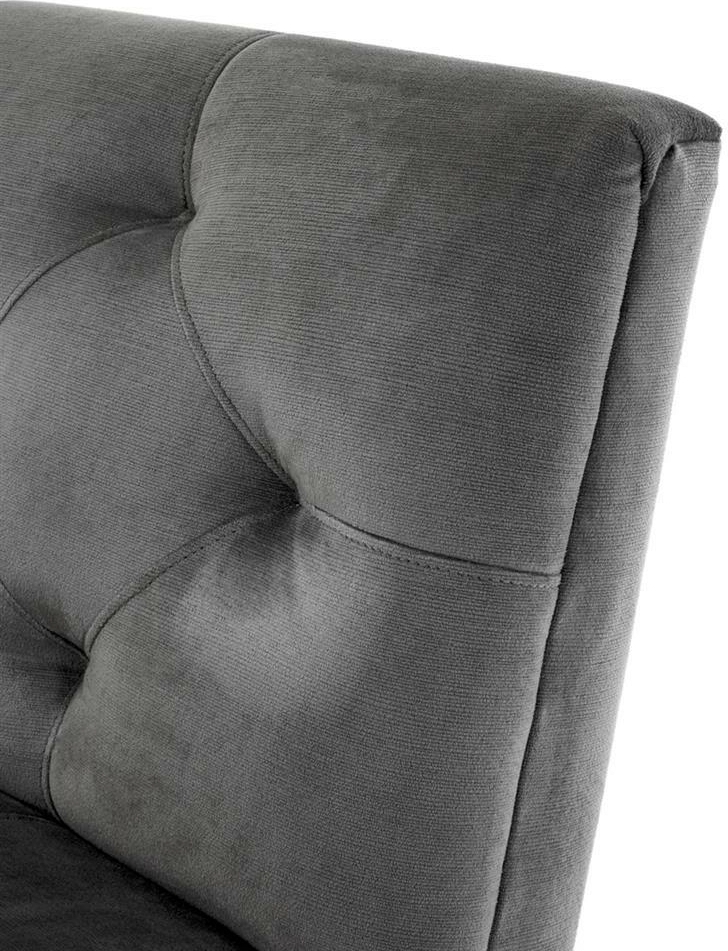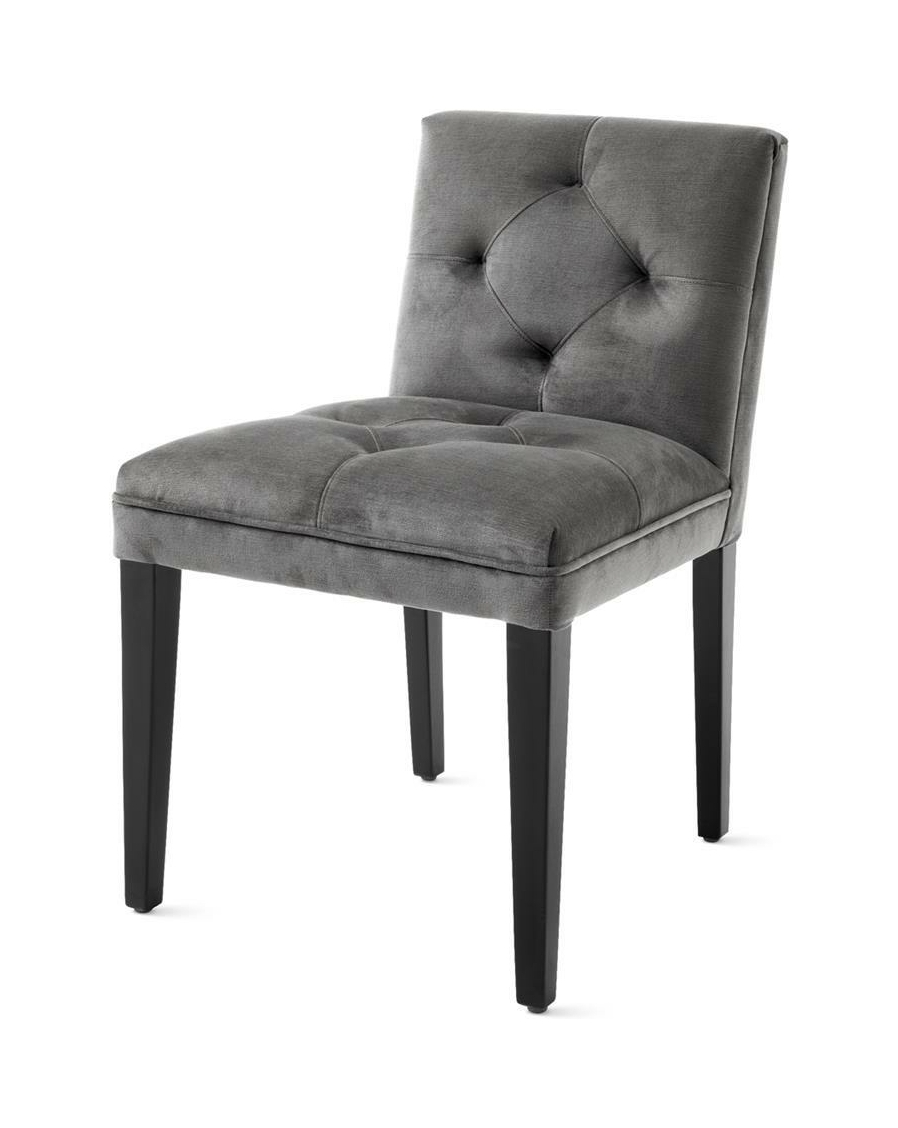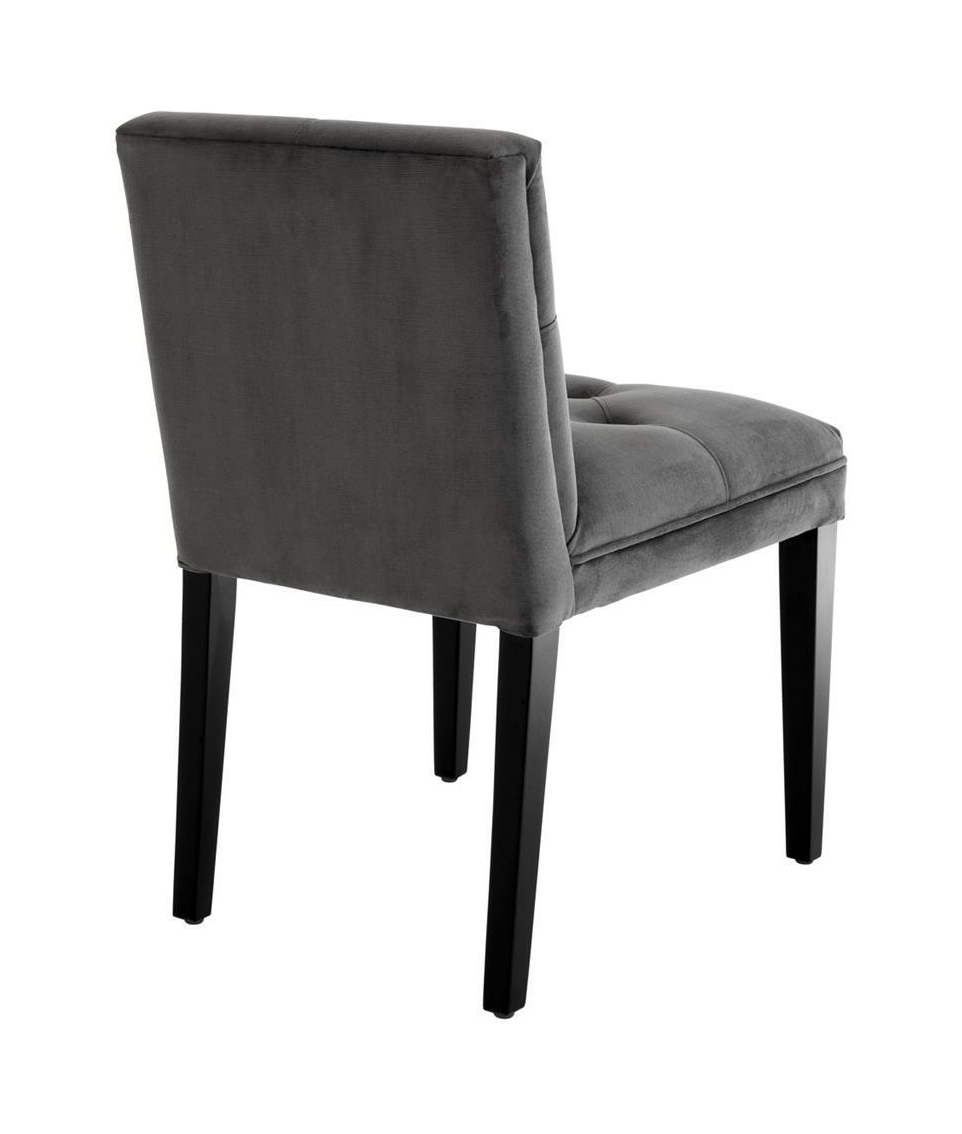 Стильный обеденный стул с велюровой обивкой в сером цвете и металлическими ножками сочетает классический дизайн Chesterfield с современным исполнением. Эргономичная форма и качественные материалы обеспечивают комфорт и долговечность использования.