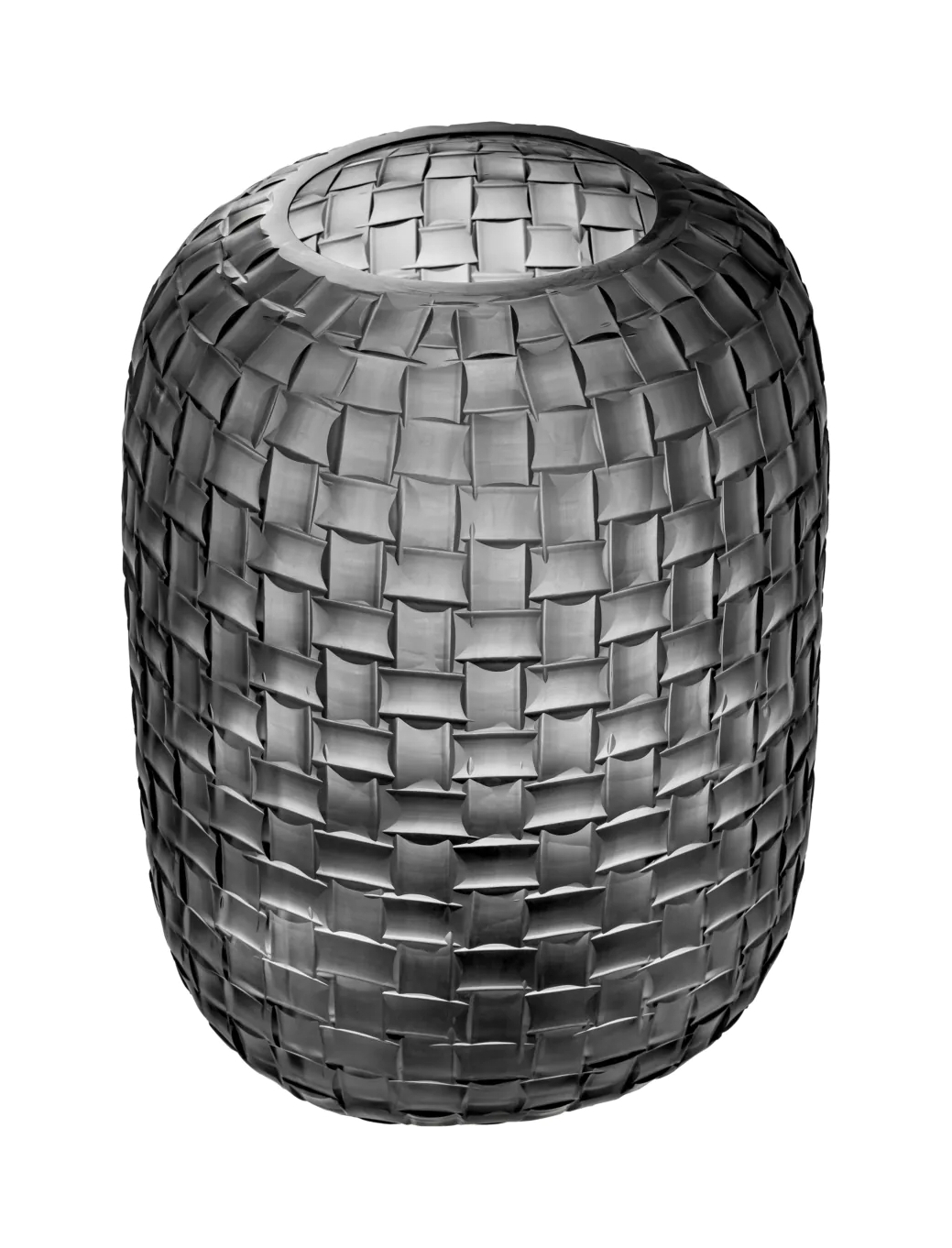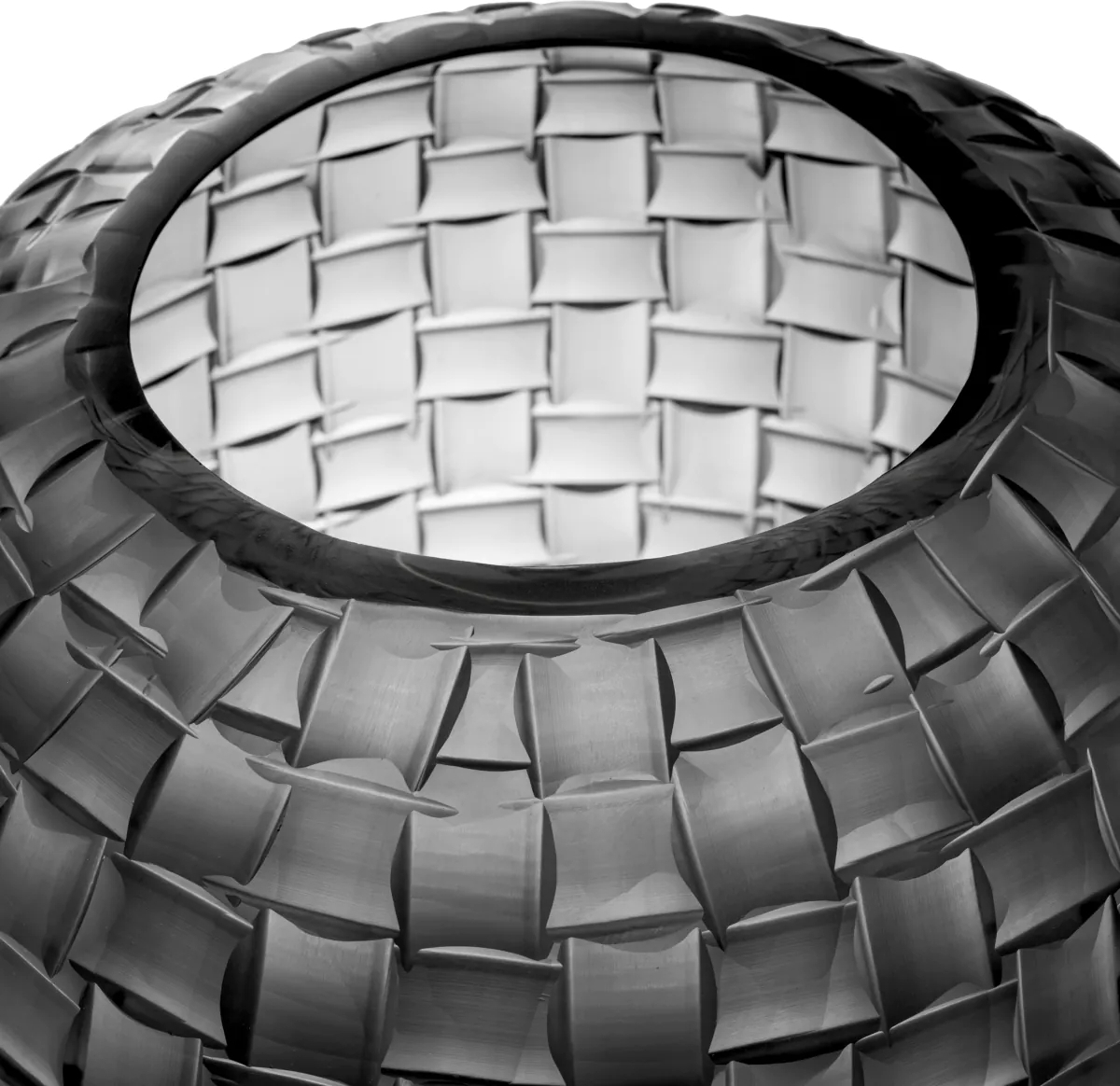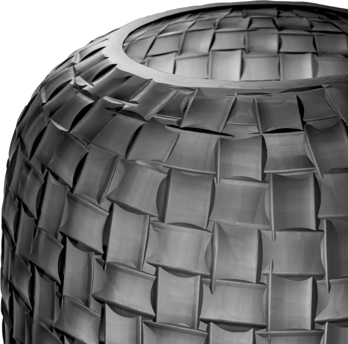 Изысканная стеклянная ваза Varese L с ручной резьбой в сером цвете и плетёным узором — воплощение эксклюзивного дизайна в интерьере.