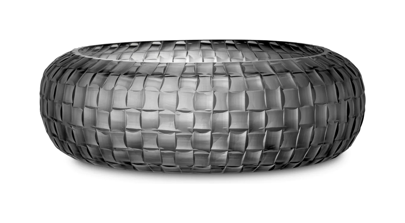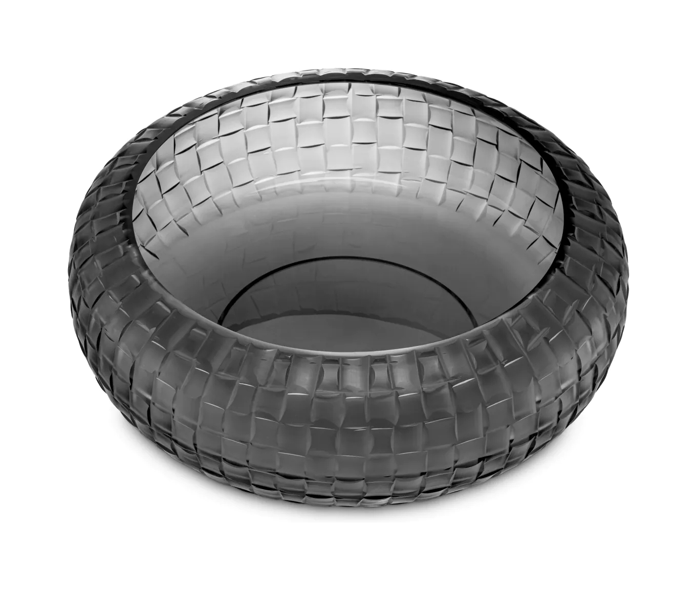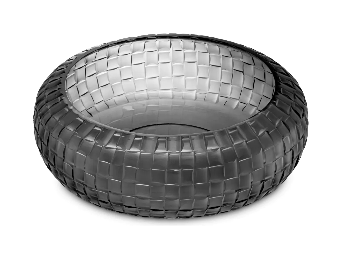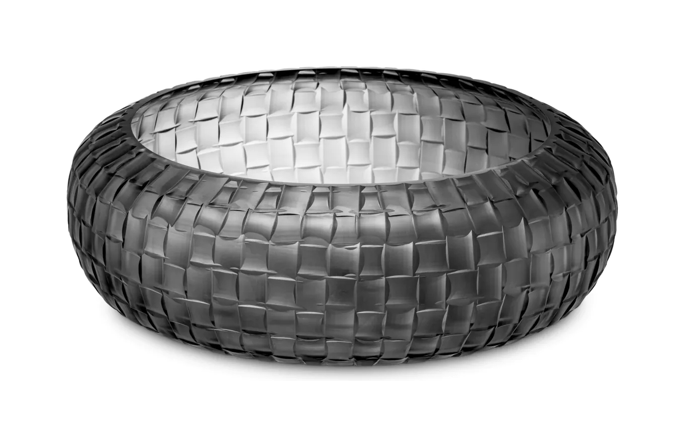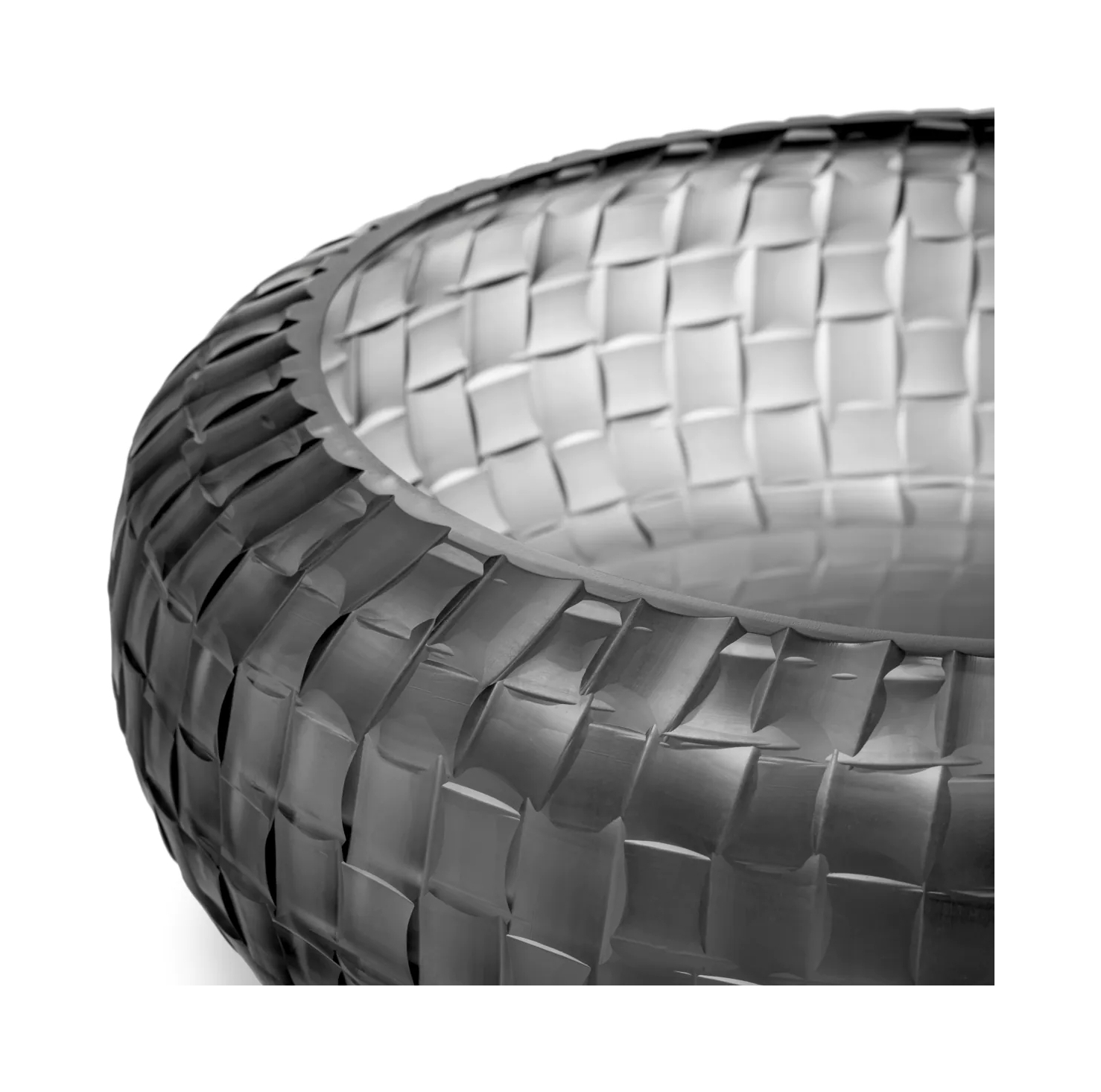Изысканная стеклянная чаша Varese с ручной резьбой в сером цвете и плетёным узором — воплощение эксклюзивного дизайна в интерьере.