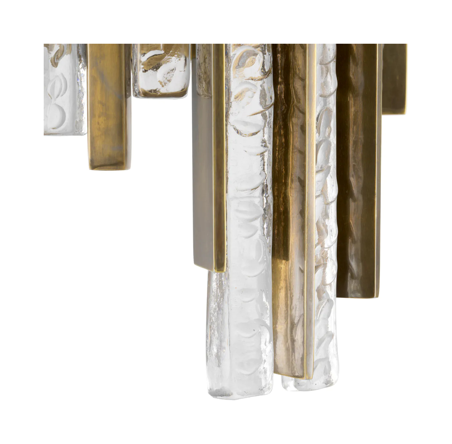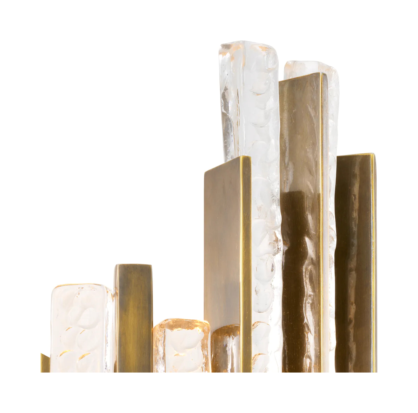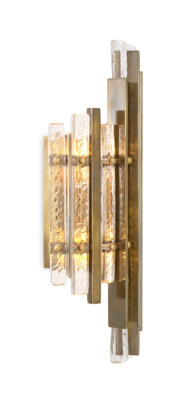 Настенный светильник Leonora — воплощение роскоши в каждой детали. Стеклянные панели ручной работы с изящным узором и винтажная латунь создают утончённую атмосферу элегантности и стиля.