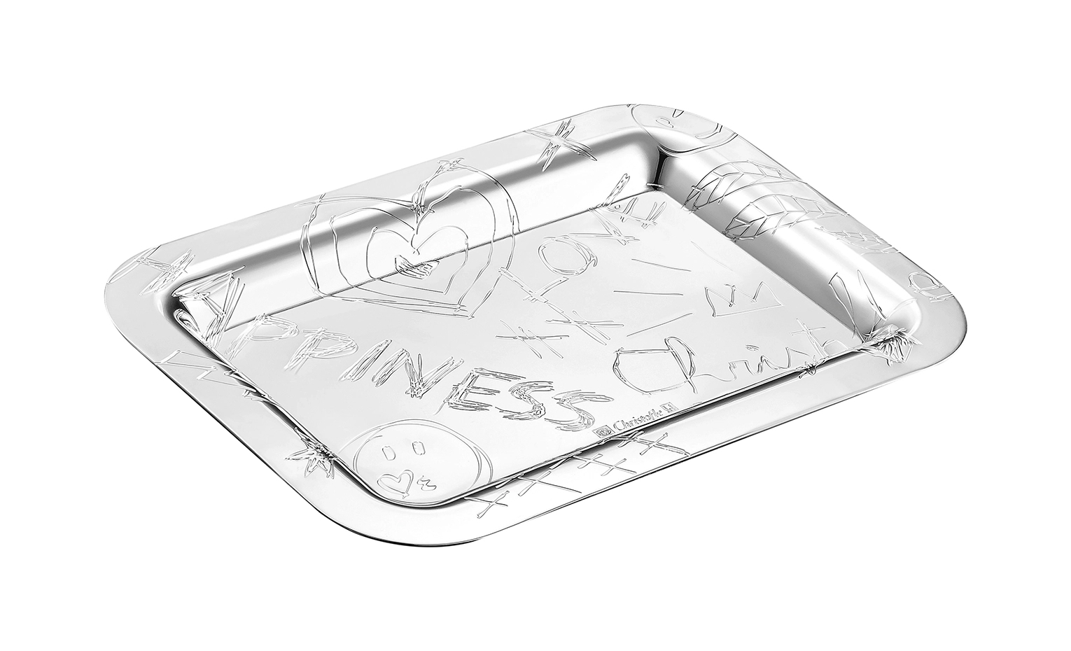 Посеребренный поднос Graffiti создан дизайнерским бюро «la tête au cube» специально для бренда Кристофль. Изящная гофрированная поверхность подноса украшена гравировкой с мотивами в стиле граффити. Для каждой модели разрабатывается уникальное декоративное решение, в котором гармонично сочетаются игривые теплые послания и узнаваемые фирменные коды дома Christofle.